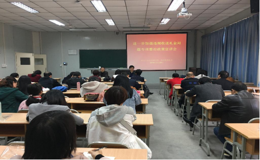 2019年3月20日16:30,sunbet申搏在江南校区十号教学楼1017教室召开进一步加强违规收送礼金问题专项整治政策宣讲会。会议由公司党总支书记冯丰收主持,公司领导班子成员和全体教师参加本次会议。