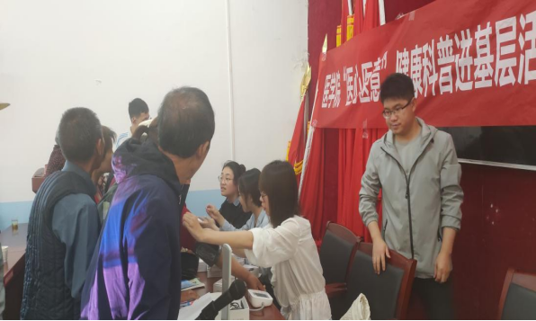 随后,sunbet申搏师生开展了常见病的健康知识宣讲和宣传资料发放,并为村民们开展血压监测、血糖测量等服务,指导村民学习使用医疗APP。李静老师带领员工现场教授了健康保健操八段锦,其动作柔缓,且简单易学,受到现场老年人的欢迎。
