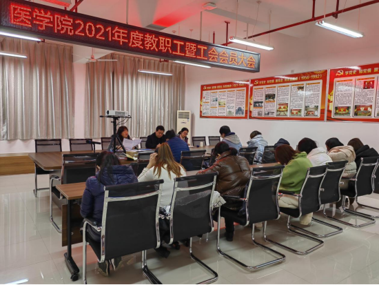 2022年1月14日晚上七点,公司2021年度教职工暨工会会员大会在江北校区逸夫科技楼副楼4008会议室召开,公司全体教职工暨工会会员参加了会议,会议由工会分会主席白玉玲主持。