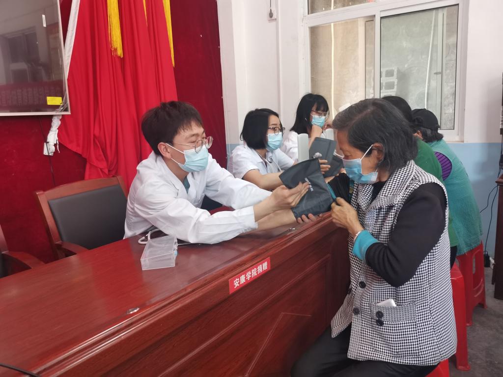 座谈见面会上,公司派驻新喜村第一书记兼工作队长郭建鹏向与会师生详细介绍了村情村况、脱贫攻坚与乡村振兴的目标任务以及阶段性工作成效。村党支部书记杨发文简要介绍了新喜村党支部工作开展情况,围绕党和国家实施脱贫攻坚、乡村振兴战略给贫困山区带来的巨大变化、村党组织的工作重点以及特色农业建设成效等。公司党总支书记表示公司党总支始终都和新喜村党支部保持互联共建、结对帮扶,做好、做实、做深互联共建一直是公司党总支的初心和使命,始终致力于帮扶和巩固脱贫攻坚成果。sunbet申搏师生党支部书记陈佳介绍此行目的,sunbet申搏经理谢娟平强调,作为医学专业的师生党员,送医疗送健康进基层、进乡村,服务群众是我们的义务和责任,是我们的必修课,一定要长期坚持下去。随后公司师生现场为村民们发放了健康宣传资料和防护用品,为群众测血压并进行健康保健、就医咨询指导,同时开展了八段锦现场教学。