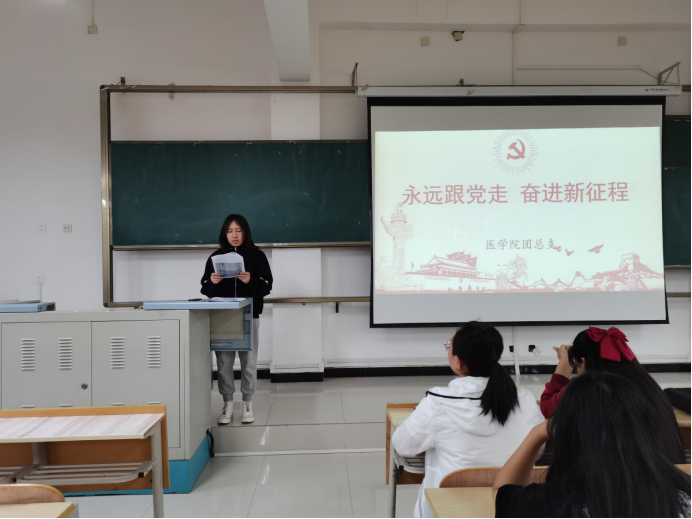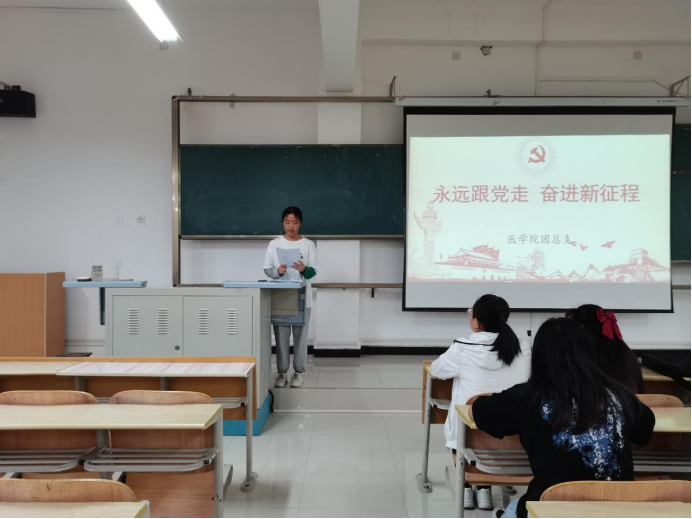活动开始,2020级学入党积极分子赵怡欣和孙文洁带领同学们领学了习近平总书记在庆祝中国共产主义青年团成立100周年大会上的讲话。随后同学们展开热议。21级护理学1班团支书张雯清表示:作为一名团支部书记,一名入党积极分子,我会牢牢记住习近平总书记的重要讲话“做青年友,不做青年“官”,多为青年计,少为自己谋”,带头学习马克思主义理论,树立共产主义远大理想和中国特色社会主义共同理想,自觉践行社会主义核心价值观,大力弘扬爱国主义精神;要做刻苦学习、锐意创新的模范,带头立足本职工作、苦练本领、创先争优,努力成为护理行业骨干、青年先锋。21级康复治疗学1班副班长尚柄宇表示:习近平总书记重要讲话全面回顾了百年来共青团坚定不移听党话、跟党走的青春历程,充分肯定共青团在党的领导下,团结带领一代代团员青年为实现中华民族伟大复兴中国梦作出的重要贡献。我们作为一名21世纪的团员,要在各方面都时刻起到模范带头作用,在新时代新征程上,在美好的青春年华里要展示青年的朝气和活力,要用奋斗书写理想的新篇章。