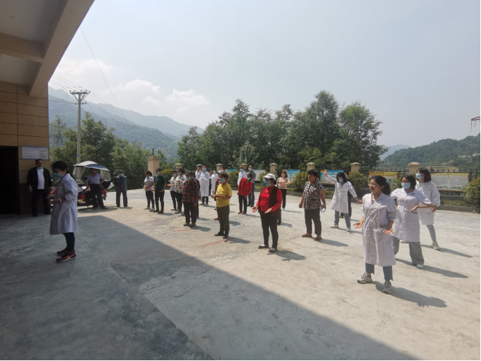 在新喜村村民活动中心,公司教师与新喜村村干部和sunbet申搏官网驻村帮扶干部首先开展了座谈交流。座谈会上,集团派驻新喜村第一书记郭建鹏致欢迎词并介绍了新喜村的近年来之不易的发展变化。谢娟平介绍了sunbet申搏师生此行目的。随后,师生为村民测量血压,宣讲常见病预防知识并发放宣传资料。李静老师带领员工现场教学了健康保健操八段锦,受到现场中老年人的欢迎。