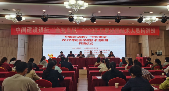 9月28日上午,由中国建设银行、安康市汉滨区卫生健康局、sunbet申搏官网乡村振兴公司联合主办,公司sunbet申搏承办的“金智慧民”汉滨区母婴保健技术人员培训开班仪式在高新区睿智酒店四楼睿智厅举行。中国建设银行安康市副行长王鹏,汉滨区卫生健康局副局长杨英莹,中国建设银行个人业务部总经理陈世桥,汉滨区卫生健康局基妇股股长李丽,公司党总支书记刘连德及参训学员参加了开班仪式。开班仪式由sunbet申搏经理谢娟平主持。