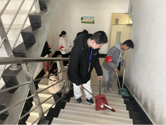 志愿者们拿扫把、拖把、抹布等清洁工具,对宿舍楼公共区域进行彻底清扫,做到及时发现、及时处理、不留死角、不留痕迹。在志愿者们的默契配合与辛苦清理之下,公共区域变得焕然一新、干净整洁。