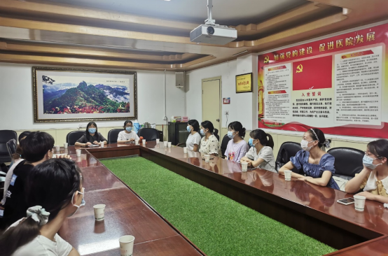 随后,公司检查组于中心医院第一会议室和实习生代表开展了座谈,与员工进行了深入交流,就员工们的实习情况以及就业情况做出了指导。谢经理首先充分肯定了公司实习生勤奋踏实、好学上进的态度,勉励他们努力工作,提升自己的专业实操技能,有任何困难可及时向公司与医院反馈。会议中,员工们踊跃发言,纷纷谈及自己实习的收获和进步,也提出了自己在实习中所遇到的困惑和问题,如科室轮转、专业实操、住宿等。陈佳副经理一一解答了同学们的困惑,并希望同学们能坚持吃苦耐劳、进一步加强组织纪律性,在临床实践中学会沟通。刘书记希望同学们要利用好实习时间,要服从医院和公司安排,同时更要做好个人疫情防护,为自己之后的就业做好准备。公司领导一行表示将就员工提出的问题进一步与医院和公司相关部门沟通,以切实解决大家的问题,同时老师们也就同学们的考研和就业提出了建议。